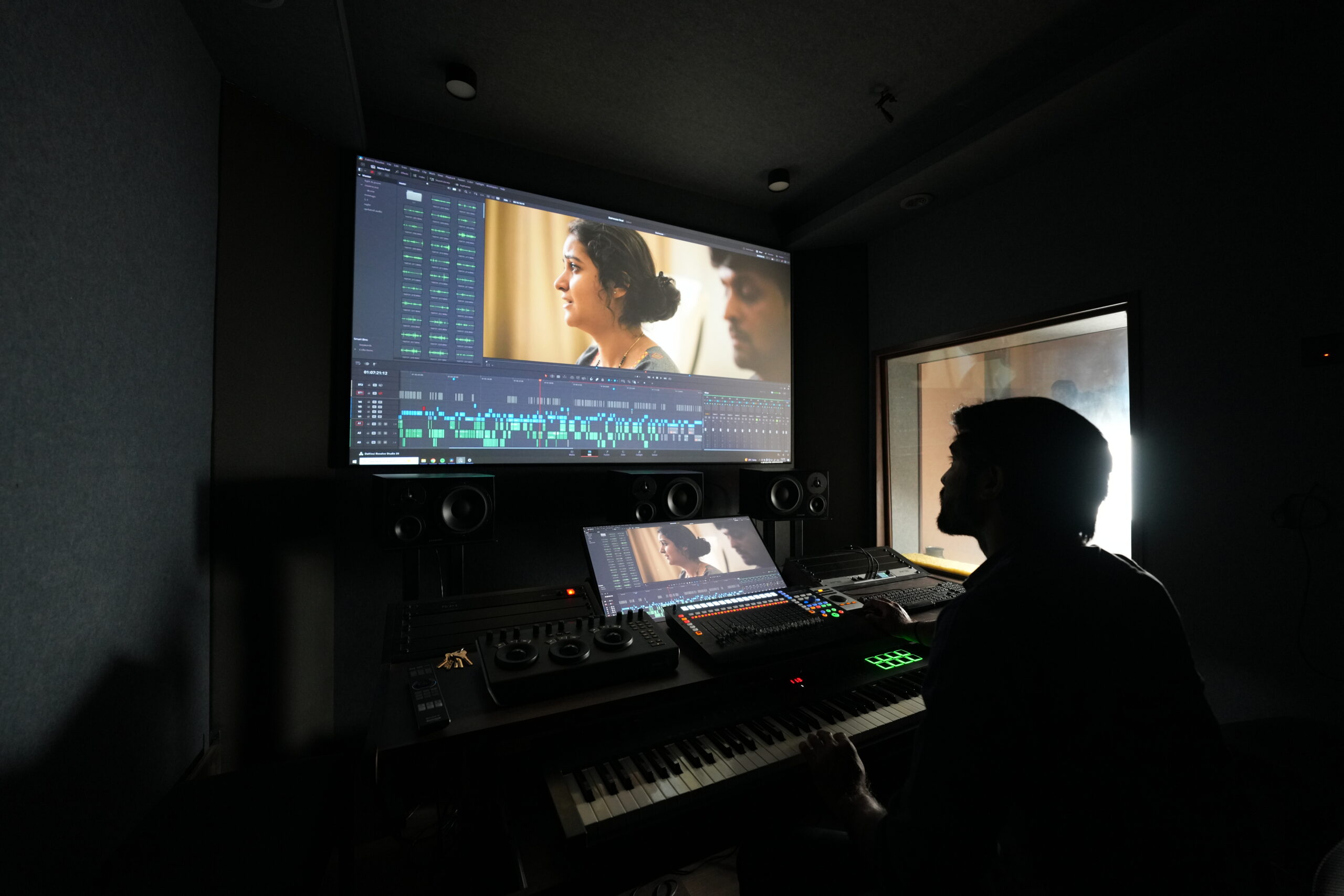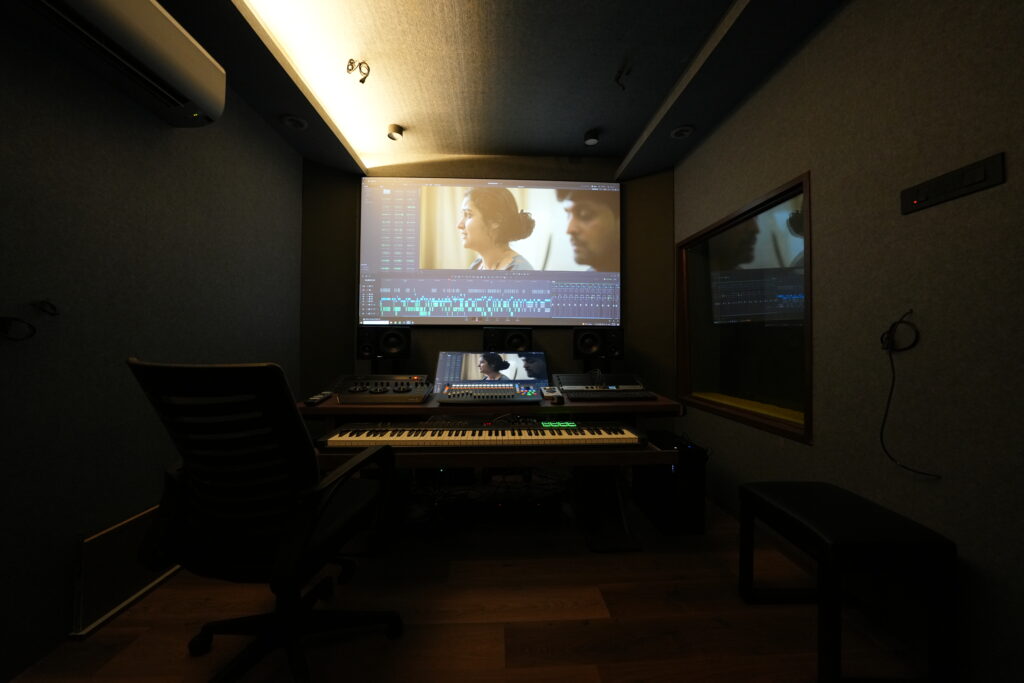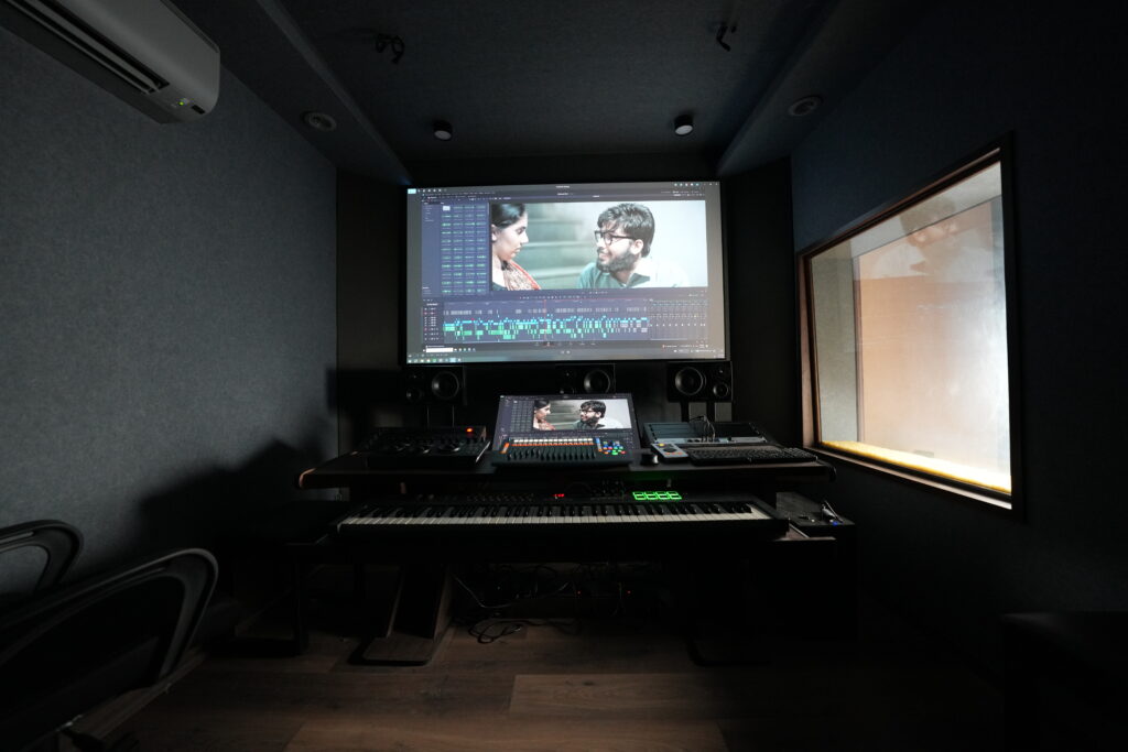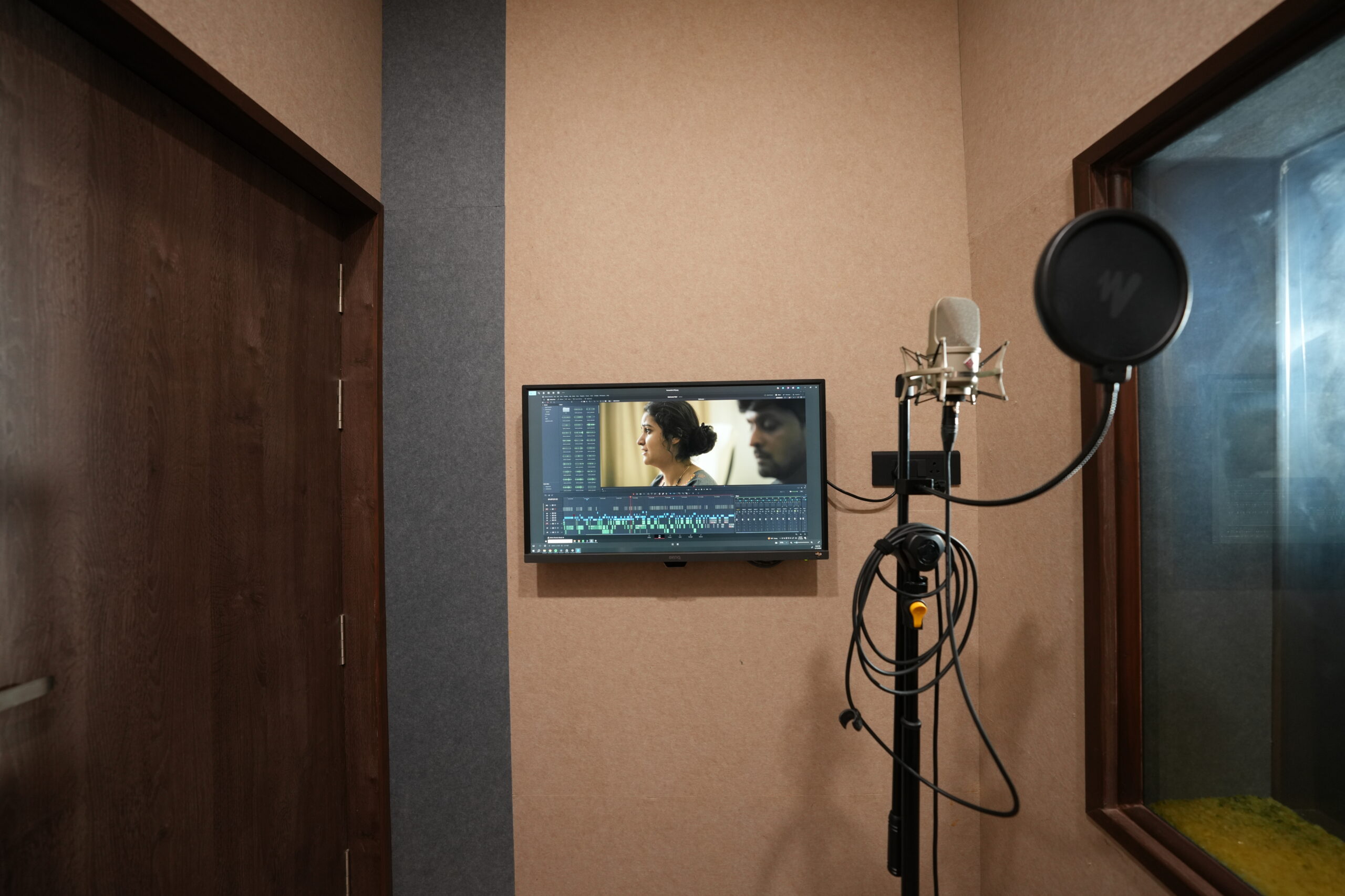 Our soundproof studio handles dubbing, ADR, and live instrument tracking, with 5.1 surround mixing — soon upgrading to 7.1 and Dolby Atmos.