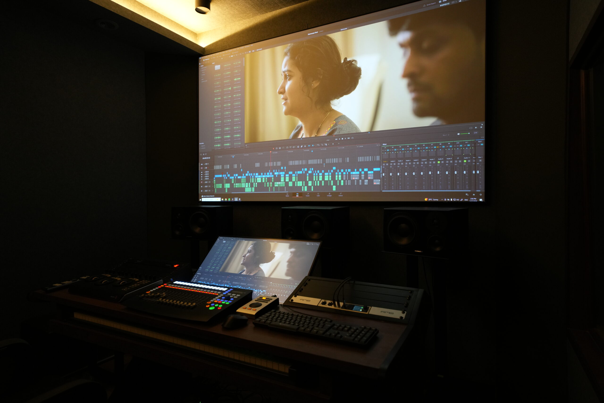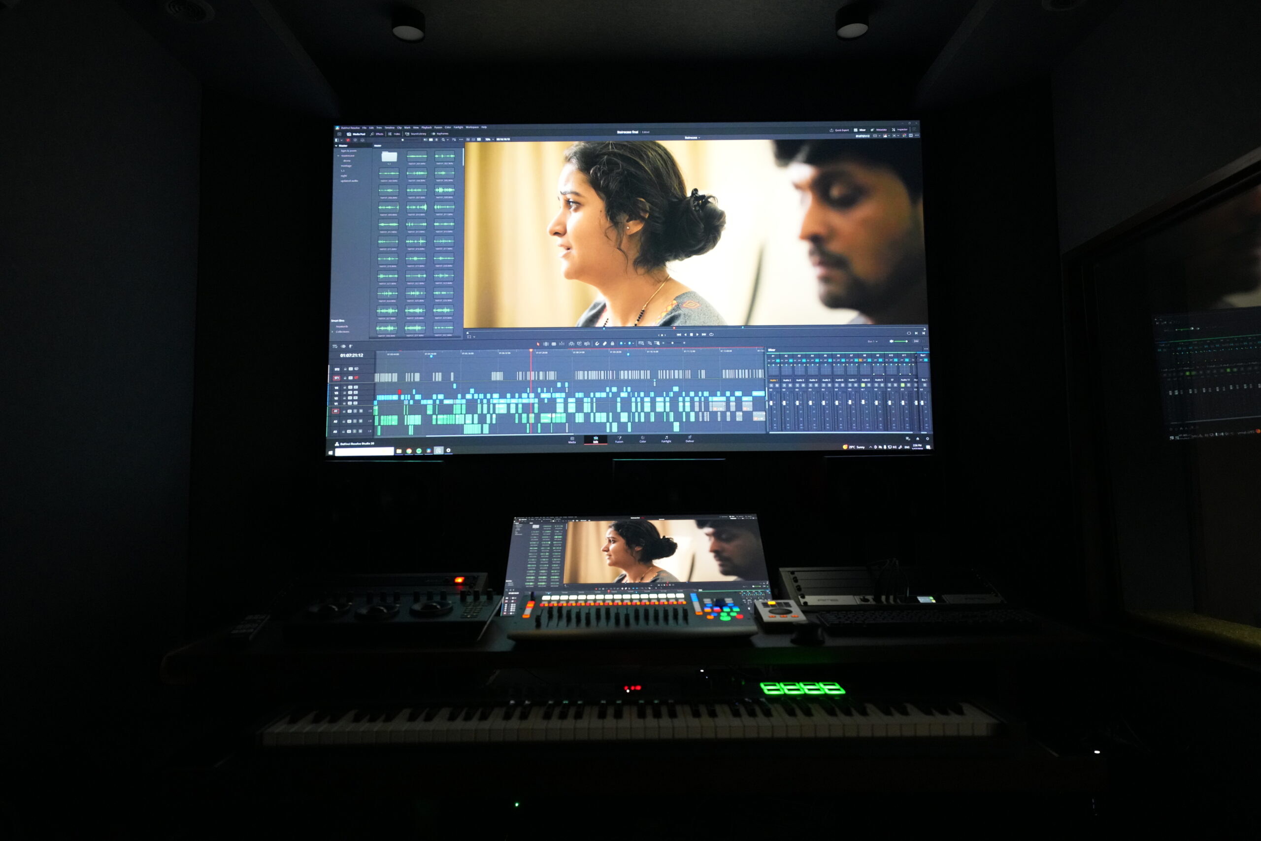 Complete post-production services including editing, DI color correction and grading, with calibrated monitors and a Sony laser projector for accurate review.